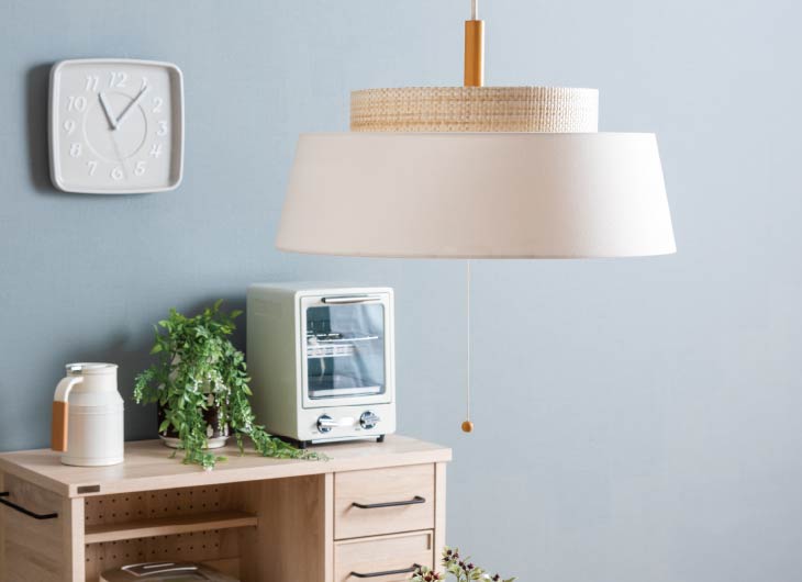 パナマ織りとファブリックを組合せたペンダントシェードです。
